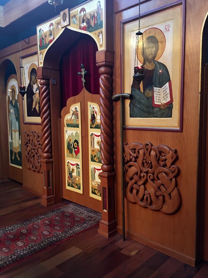 Photos: The Nordic carvings on our iconostasis are copies from a thousand year old stave church in Norway.