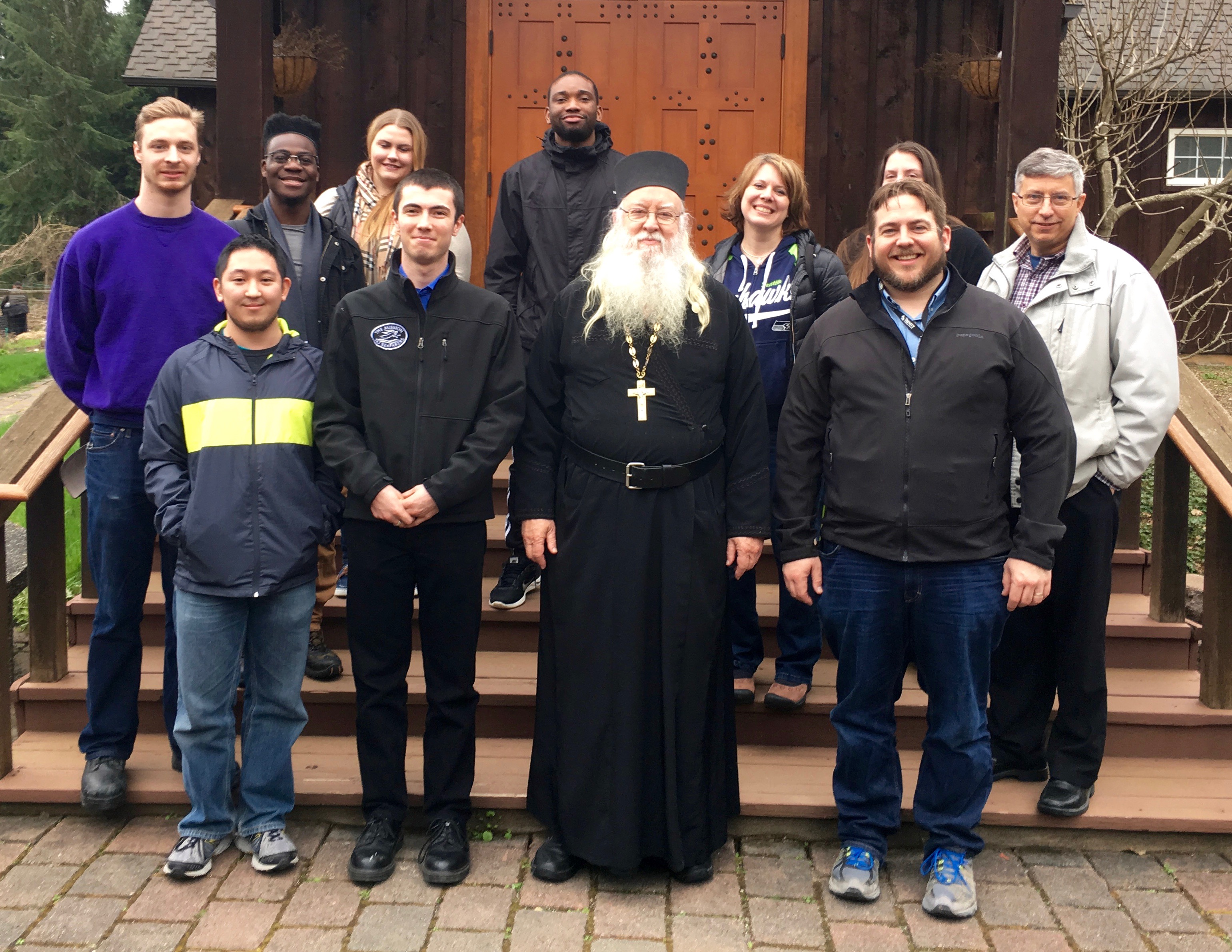 Photos: Vistors from Trinity Lutheran College in Everett, WA, together with a chaplain from the United Port Ministries of Seattle, joined the monks for lunch, and conversation with Abbot Tryphon.
